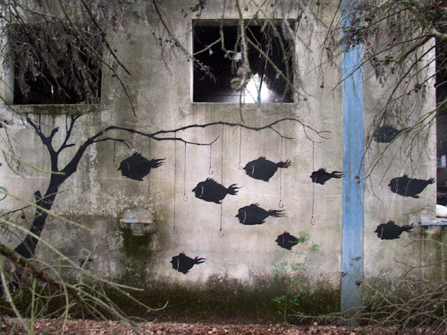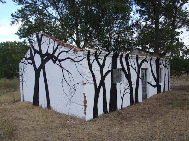 Здесь же объединяются 2 мотива: реально существующие трещины на стенах художник превращает в деревья. Правда, красивая ассоциация?